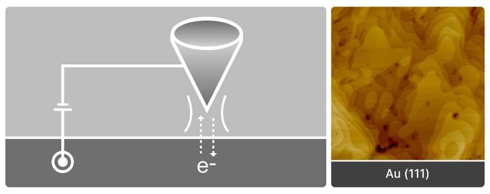 Atomic-scale electronic surface imaging based on tunneling current detection between tip and sample
